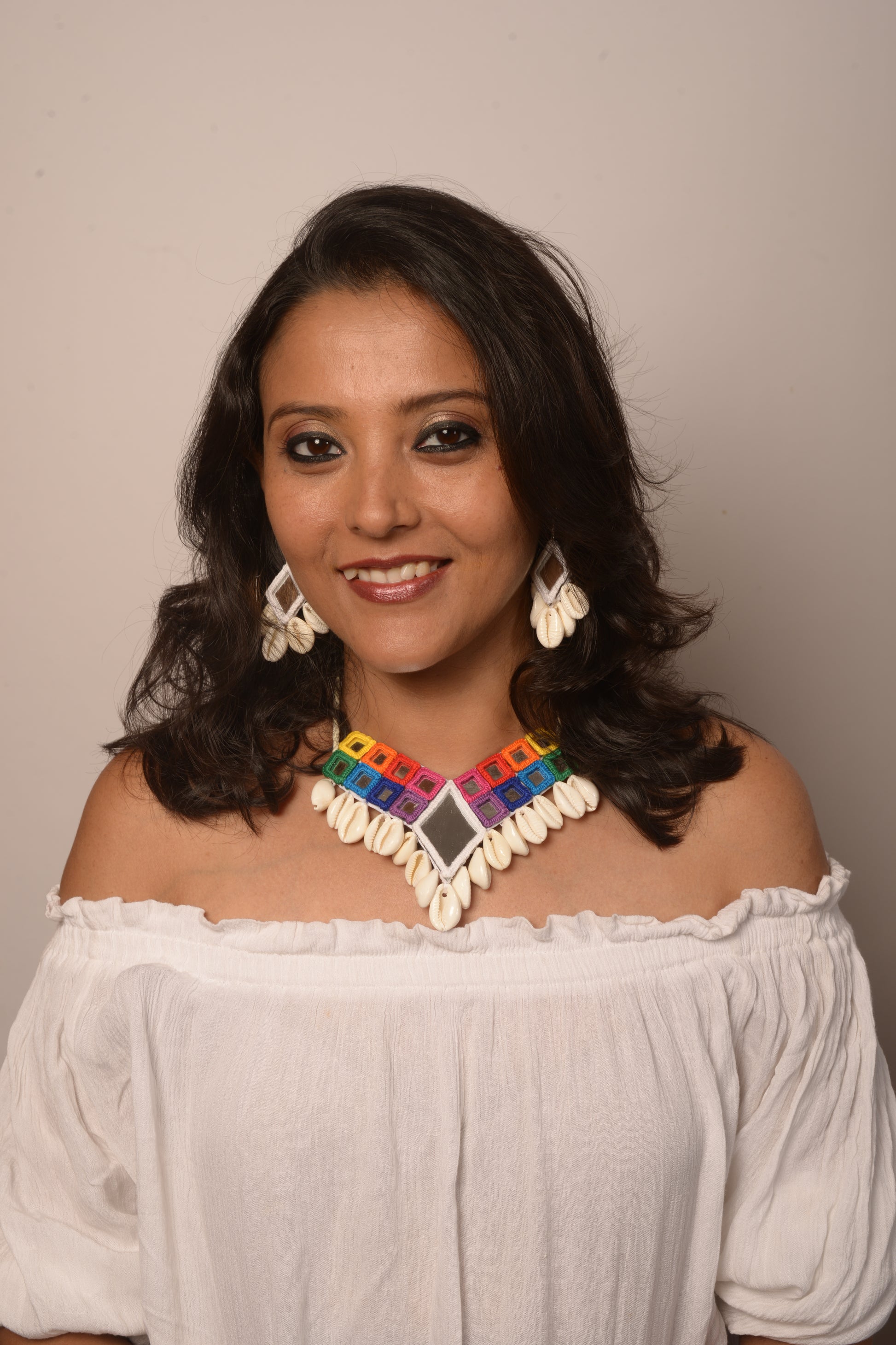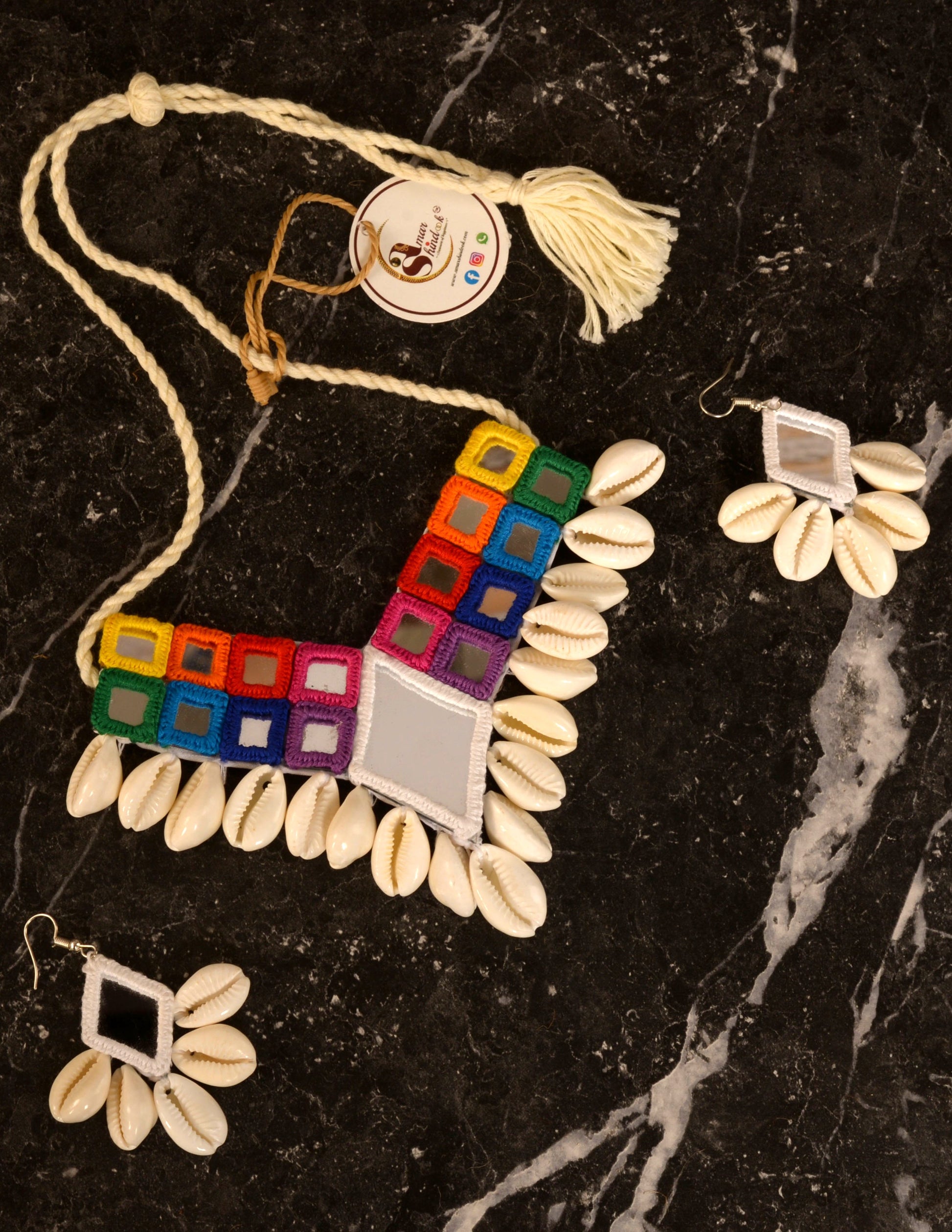 Mirror work jewellery is an exquisite form of handcrafted artistry that reflects both beauty and tradition. These exclusive ornaments often feature small, intricately cut mirrors embedded in a variety of jewellery pieces, from necklaces to earrings. Traditionally worn in Indian weddings and festivals, mirror jewellery has gained popularity globally for its bold, reflective designs that catch the light and create a dazzling effect. These handcrafted pieces are often paired with colourful beads and metalwork, creating a vibrant, festive look. Our Mirror jewellery ornaments are a perfect choice for those seeking to make a bold fashion statement with a touch of cultural heritage.