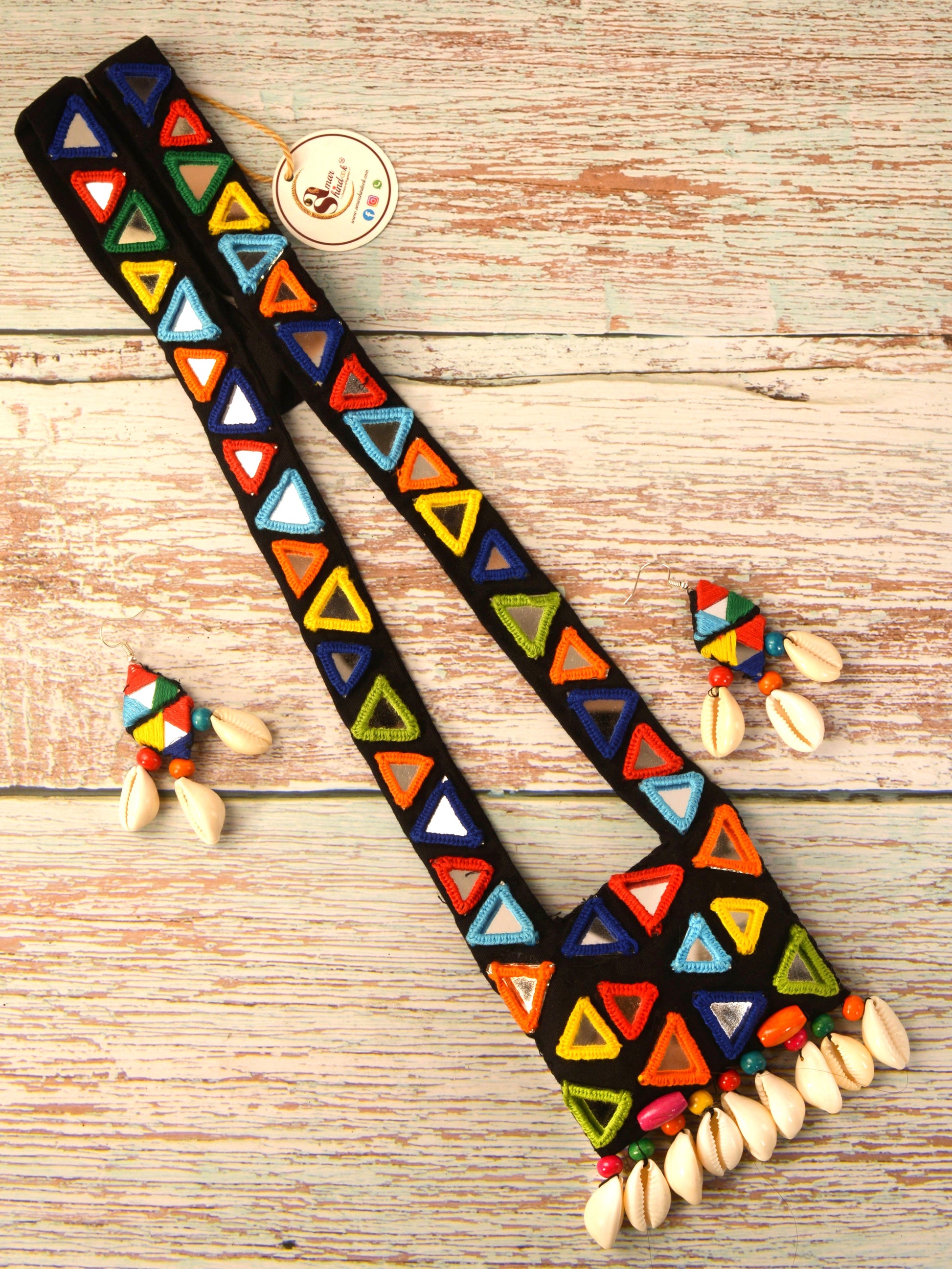 Mirror work jewellery is an exquisite form of handcrafted artistry that reflects both beauty and tradition. These exclusive ornaments often feature small, intricately cut mirrors embedded in a variety of jewellery pieces, from necklaces to earrings. Traditionally worn in Indian weddings and festivals, mirror jewellery has gained popularity globally for its bold, reflective designs that catch the light and create a dazzling effect. These handcrafted pieces are often paired with colourful beads and metalwork, creating a vibrant, festive look. Our Mirror jewellery ornaments are a perfect choice for those seeking to make a bold fashion statement with a touch of cultural heritage.