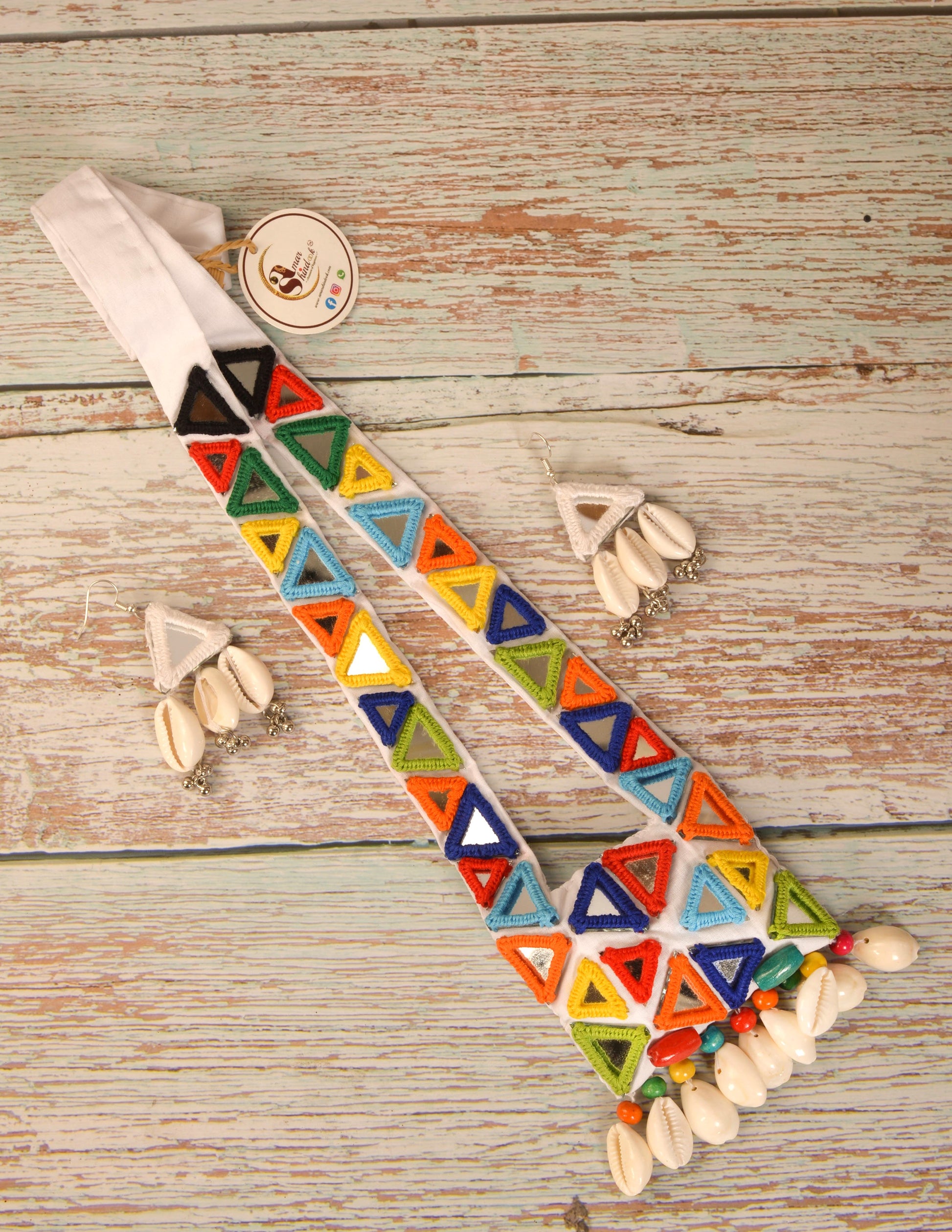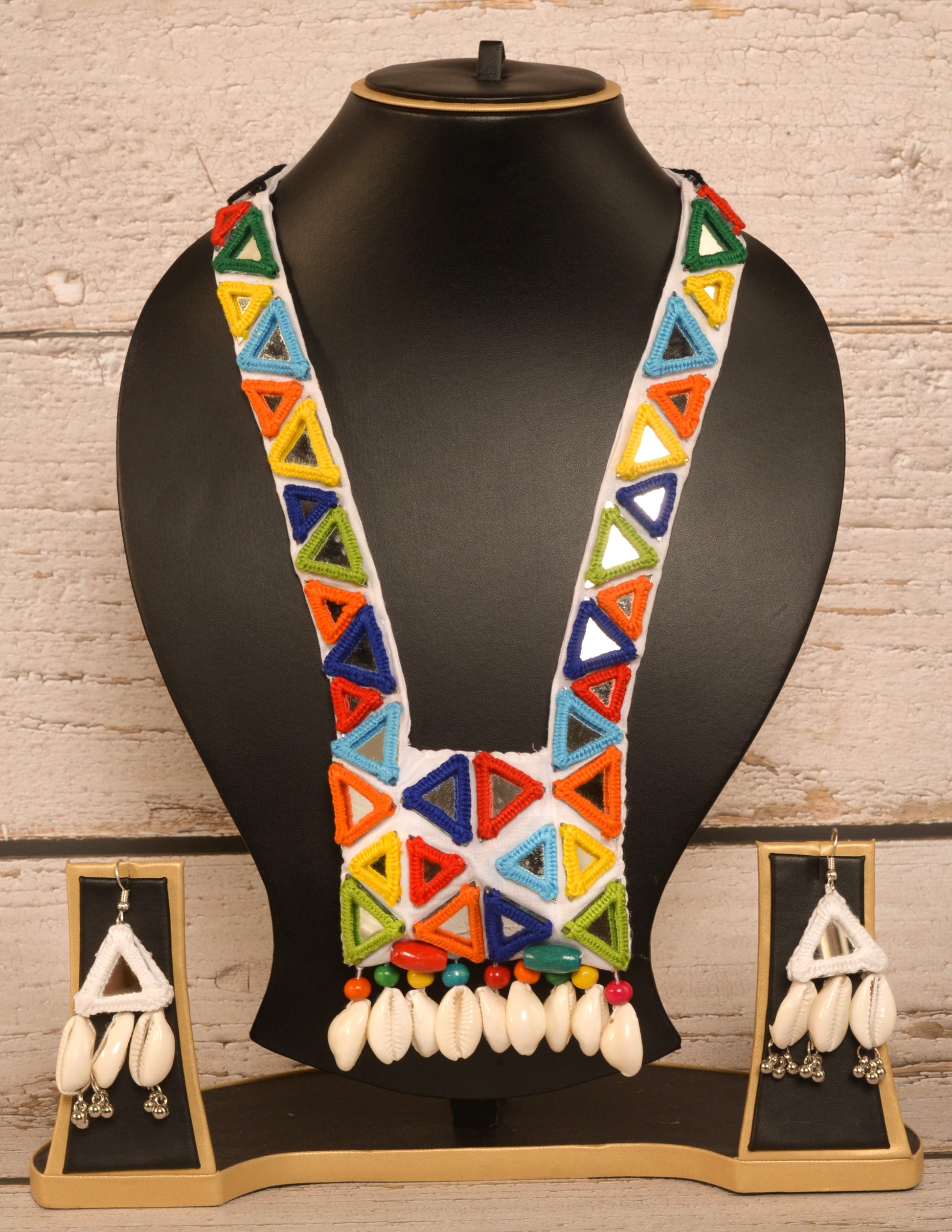 Mirror work jewellery is an exquisite form of handcrafted artistry that reflects both beauty and tradition. These exclusive ornaments often feature small, intricately cut mirrors embedded in a variety of jewellery pieces, from necklaces to earrings. Traditionally worn in Indian weddings and festivals, mirror jewellery has gained popularity globally for its bold, reflective designs that catch the light and create a dazzling effect. These handcrafted pieces are often paired with colourful beads and metalwork, creating a vibrant, festive look. Our Mirror jewellery ornaments are a perfect choice for those seeking to make a bold fashion statement with a touch of cultural heritage.