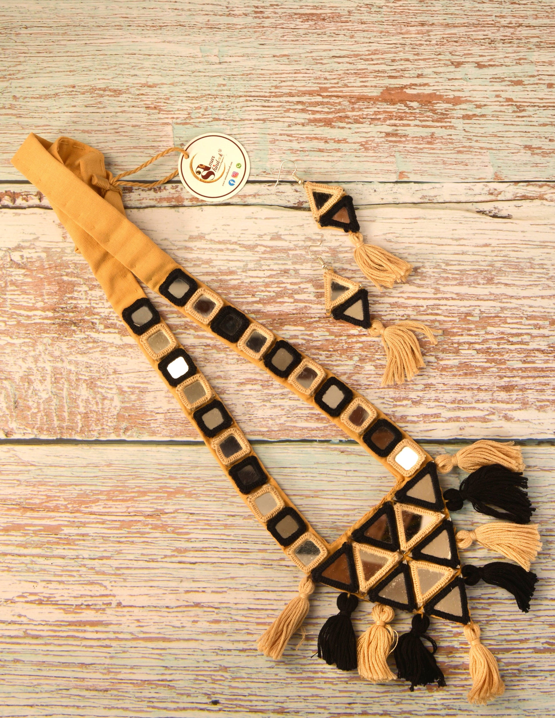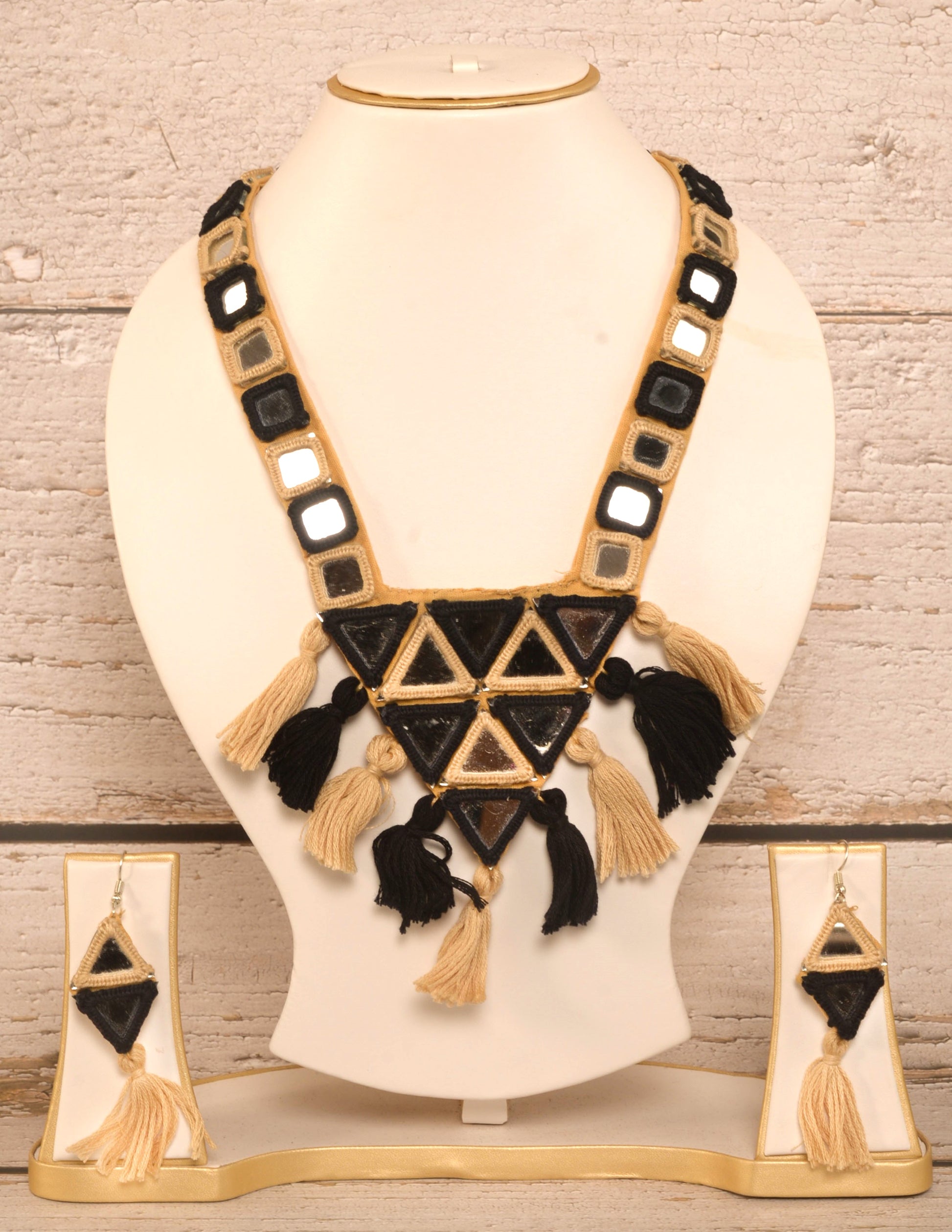Mirror work jewellery is an exquisite form of handcrafted artistry that reflects both beauty and tradition. These exclusive ornaments often feature small, intricately cut mirrors embedded in a variety of jewellery pieces, from necklaces to earrings. Traditionally worn in Indian weddings and festivals, mirror jewellery has gained popularity globally for its bold, reflective designs that catch the light and create a dazzling effect. These handcrafted pieces are often paired with colourful beads and metalwork, creating a vibrant, festive look. Our Mirror jewellery ornaments are a perfect choice for those seeking to make a bold fashion statement with a touch of cultural heritage.