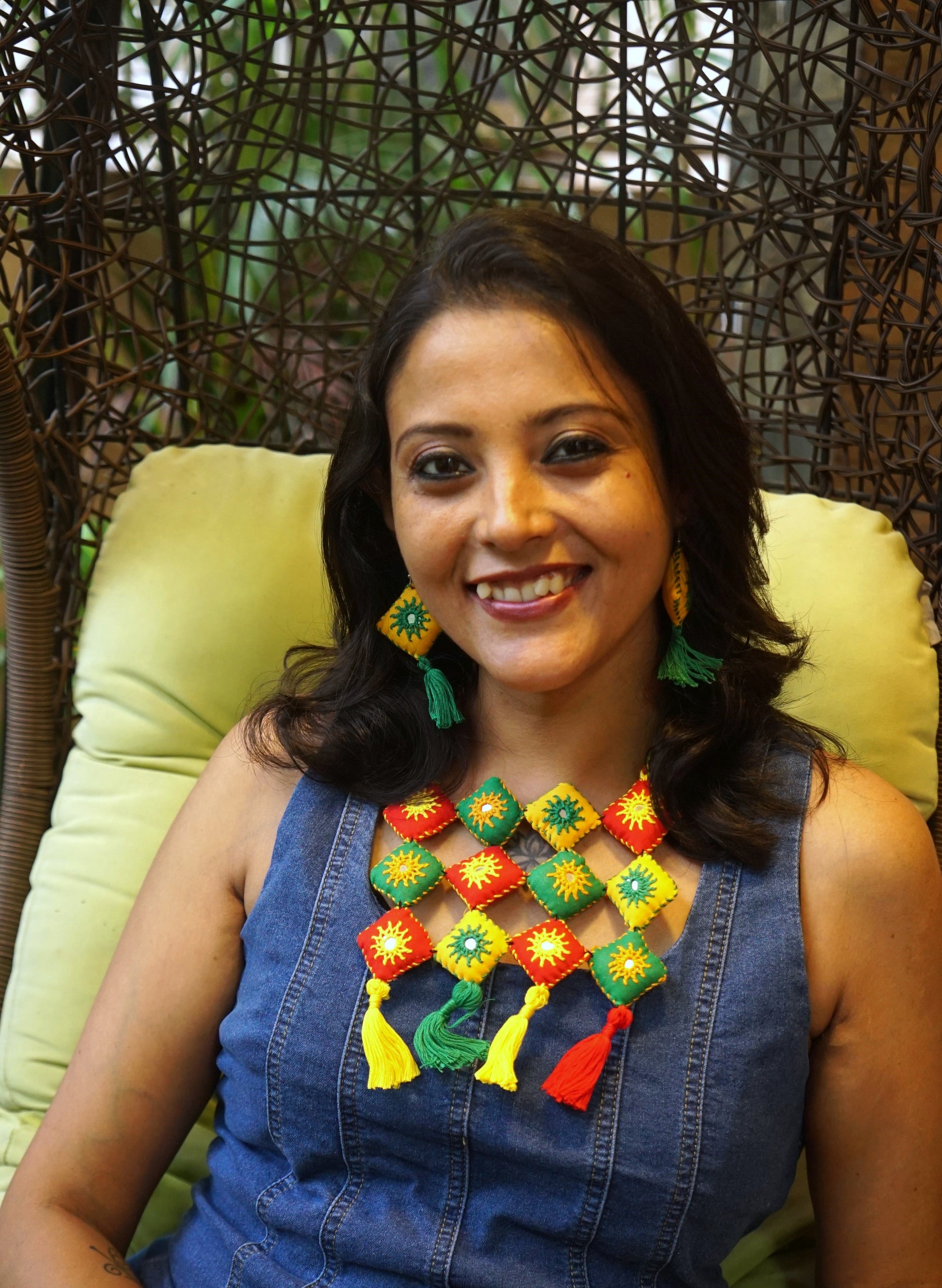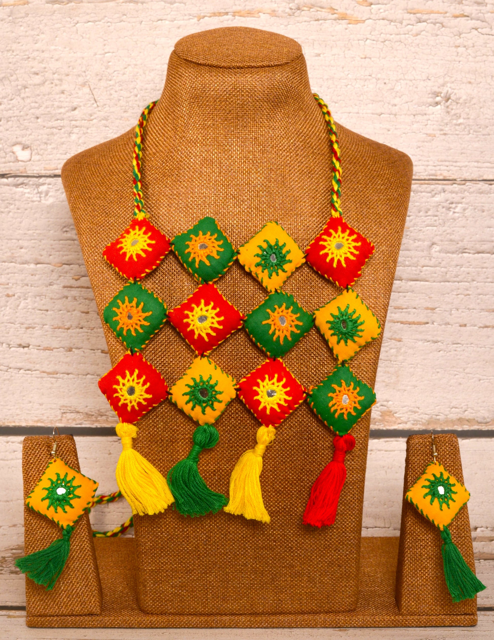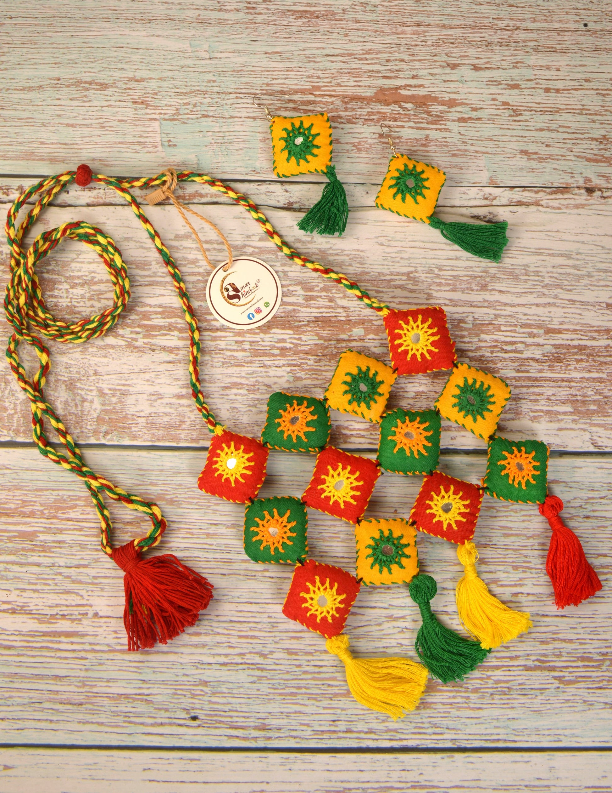 Mirror work jewellery is an exquisite form of handcrafted artistry that reflects both beauty and tradition. These exclusive ornaments often feature small, intricately cut mirrors embedded in a variety of jewellery pieces, from necklaces to earrings. Traditionally worn in Indian weddings and festivals, mirror jewellery has gained popularity globally for its bold, reflective designs that catch the light and create a dazzling effect. These handcrafted pieces are often paired with colourful beads and metalwork, creating a vibrant, festive look. Our Mirror jewellery ornaments are a perfect choice for those seeking to make a bold fashion statement with a touch of cultural heritage.