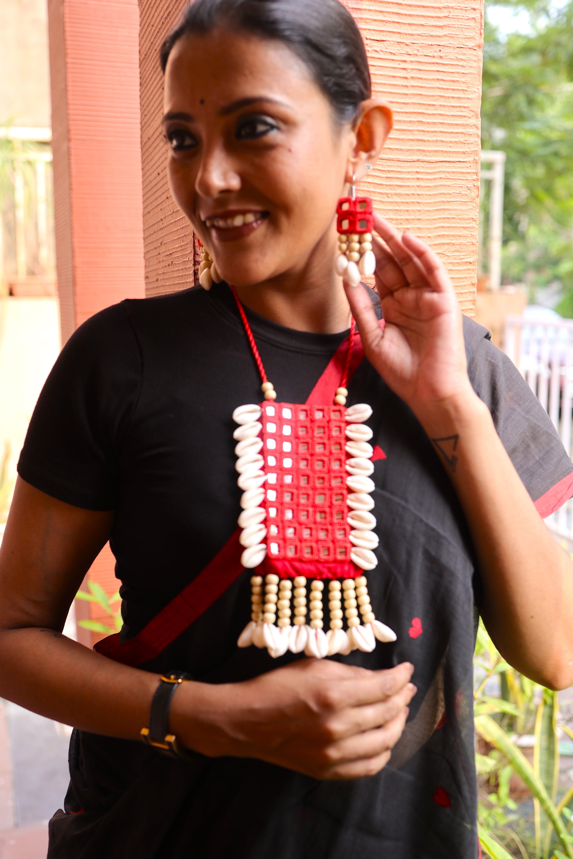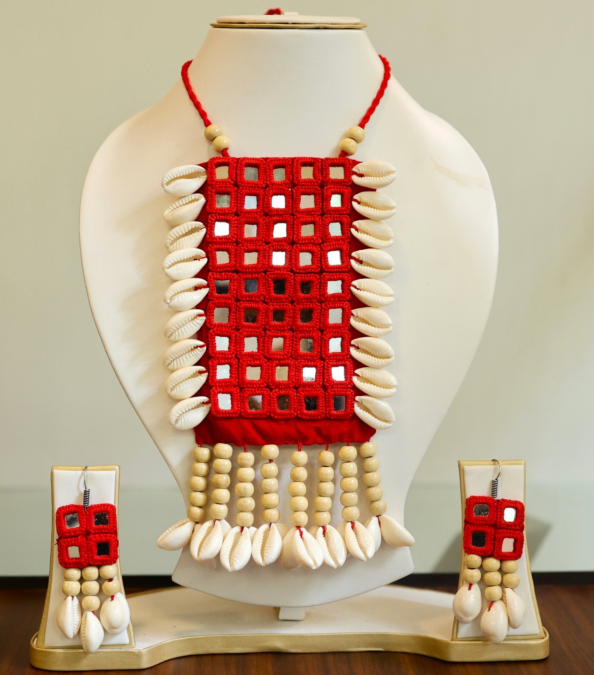 Mirror work jewellery is an exquisite form of handcrafted artistry that reflects both beauty and tradition. These exclusive ornaments often feature small, intricately cut mirrors embedded in a variety of jewellery pieces, from necklaces to earrings. Traditionally worn in Indian weddings and festivals, mirror jewellery has gained popularity globally for its bold, reflective designs that catch the light and create a dazzling effect. These handcrafted pieces are often paired with colourful beads and metalwork, creating a vibrant, festive look. Our Mirror jewellery ornaments are a perfect choice for those seeking to make a bold fashion statement with a touch of cultural heritage.
