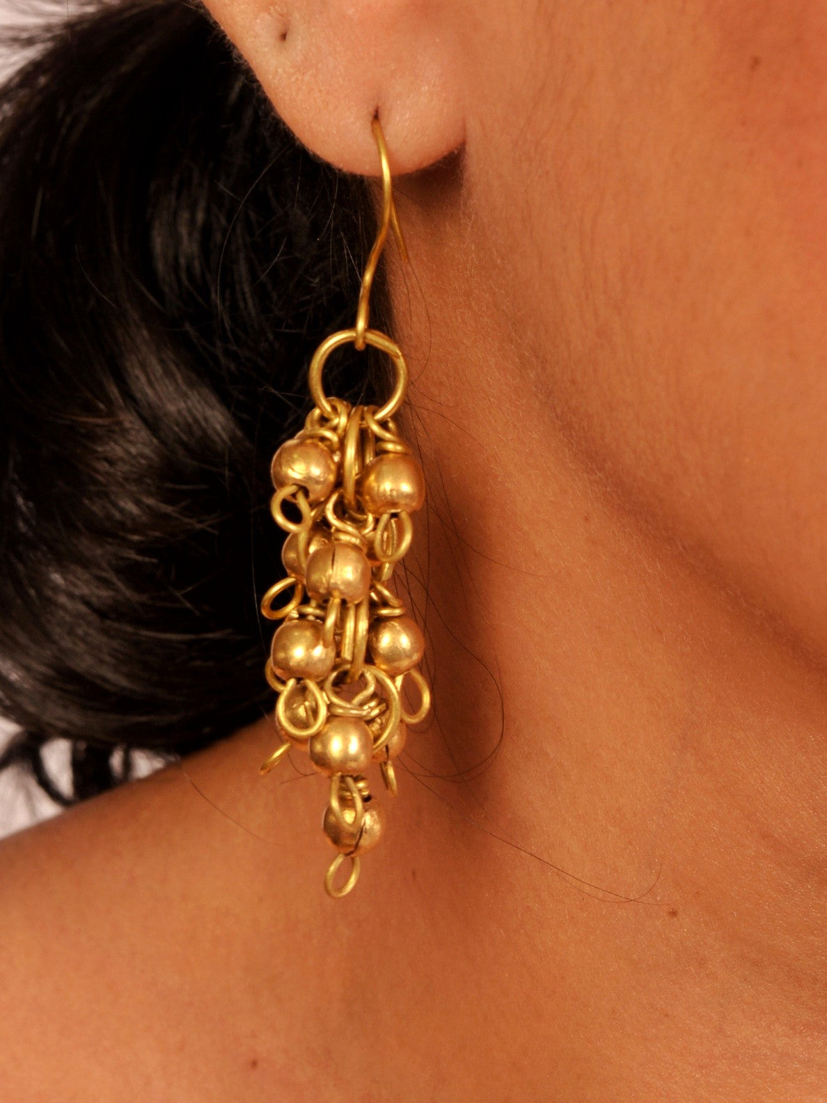 Contemporary Dokra jewellery is a stylish and artisanal form of adornment that blends traditional metal casting techniques with modern aesthetics. Crafted by skilled artisans using the ancient lost-wax technique, each piece features intricate designs, often inspired by nature and tribal motifs. The rustic appeal of Dokra pieces make it a versatile accessory, perfectly complemented by indowestern clothing and earthy, bohemian attire along with handwoven sarees, linen or cotton dresses, and ethnic kurtas. The raw, natural finish of these ornaments pairs well with minimalistic clothing in neutral tones, allowing them to stand out as a statement piece.