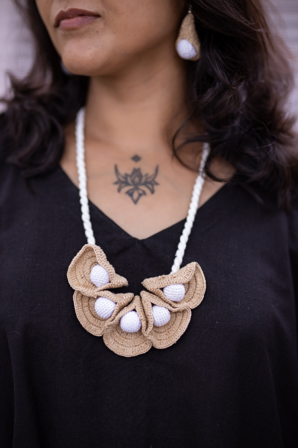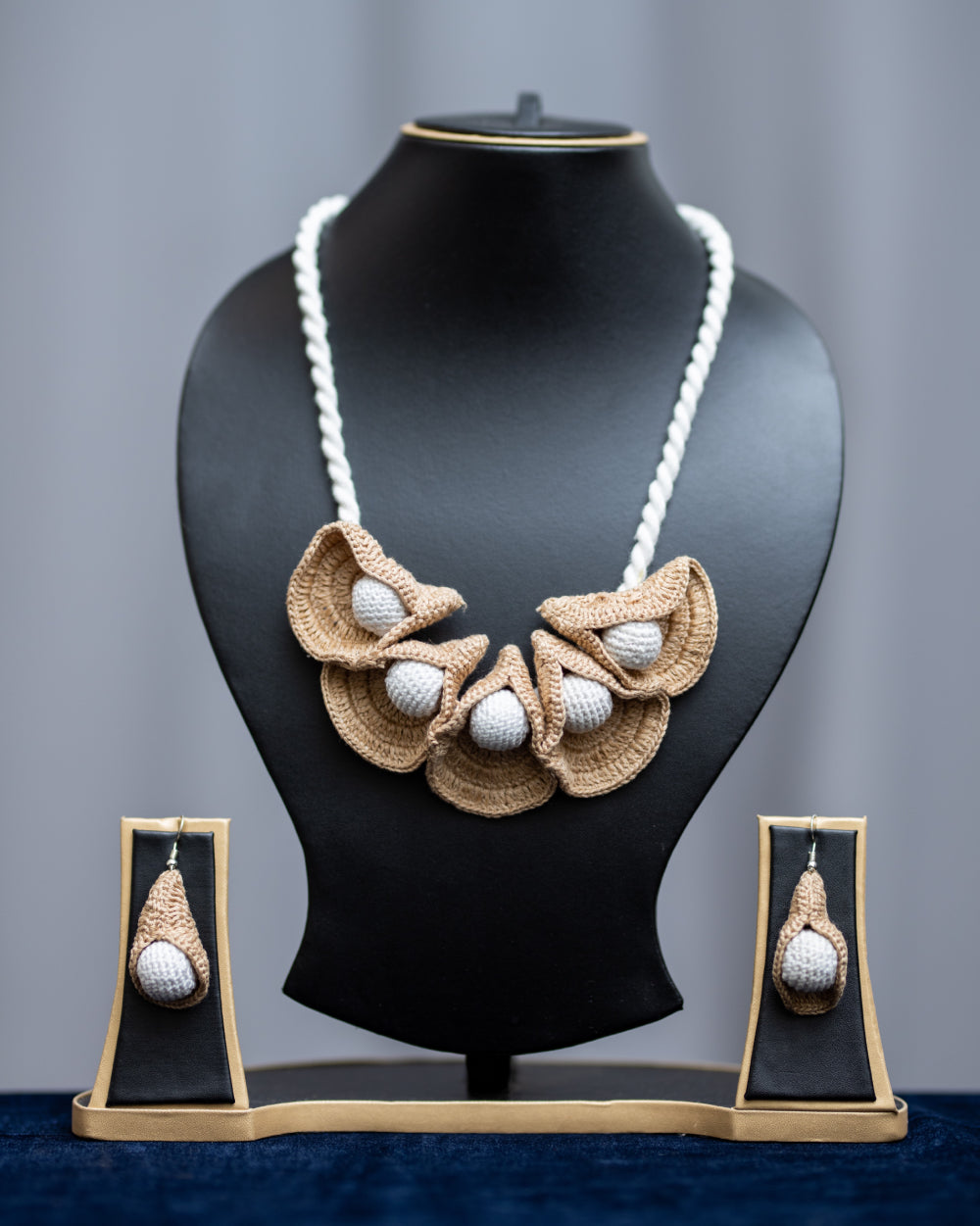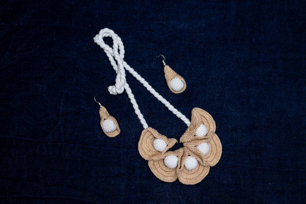 Crochet jewellery offers a delicate and exquisite alternative to traditional metal ornaments. These handcrafted pieces are exclusively created using fine threads and intricate crochet techniques, resulting in lightweight, unique accessories that make a statement. From necklaces to earrings, each item is meticulously crafted, often incorporating beads and crystals for added elegance. Our Crochet jewellery is perfect for those who seek a more personalised, artisanal touch in their accessories, blending fashion with timeless craftsmanship. The intricate designs and soft textures of crochet ornaments make them a versatile addition to any jewellery collection.