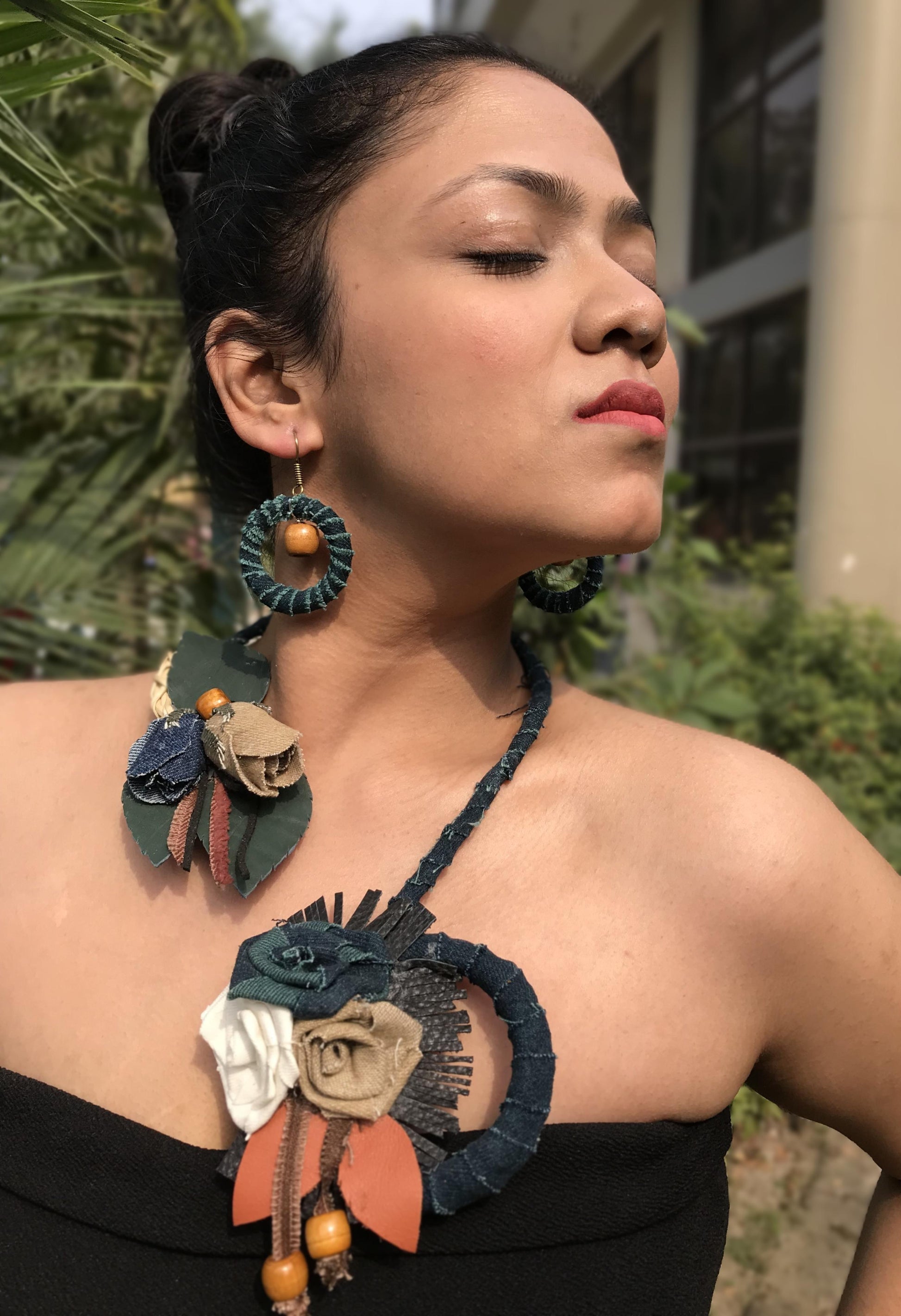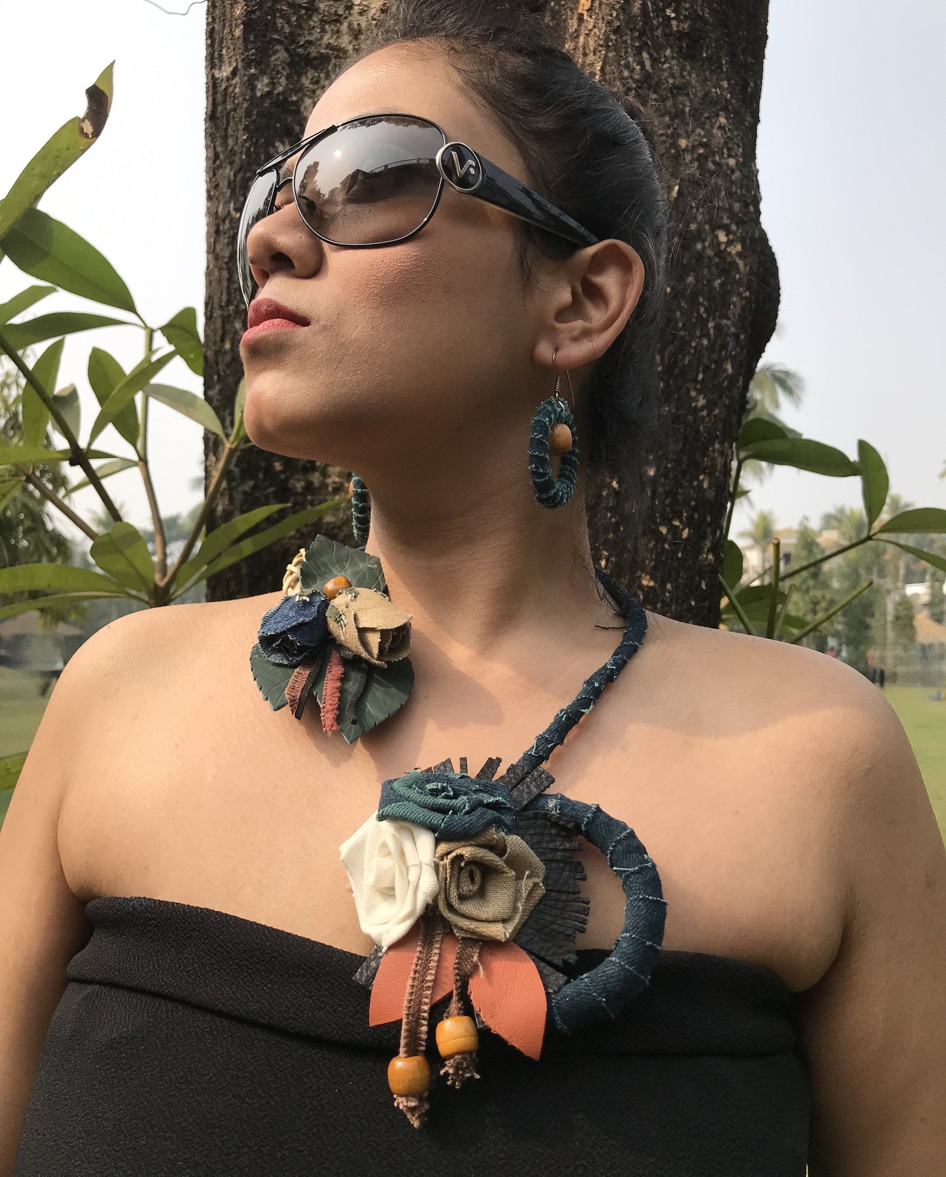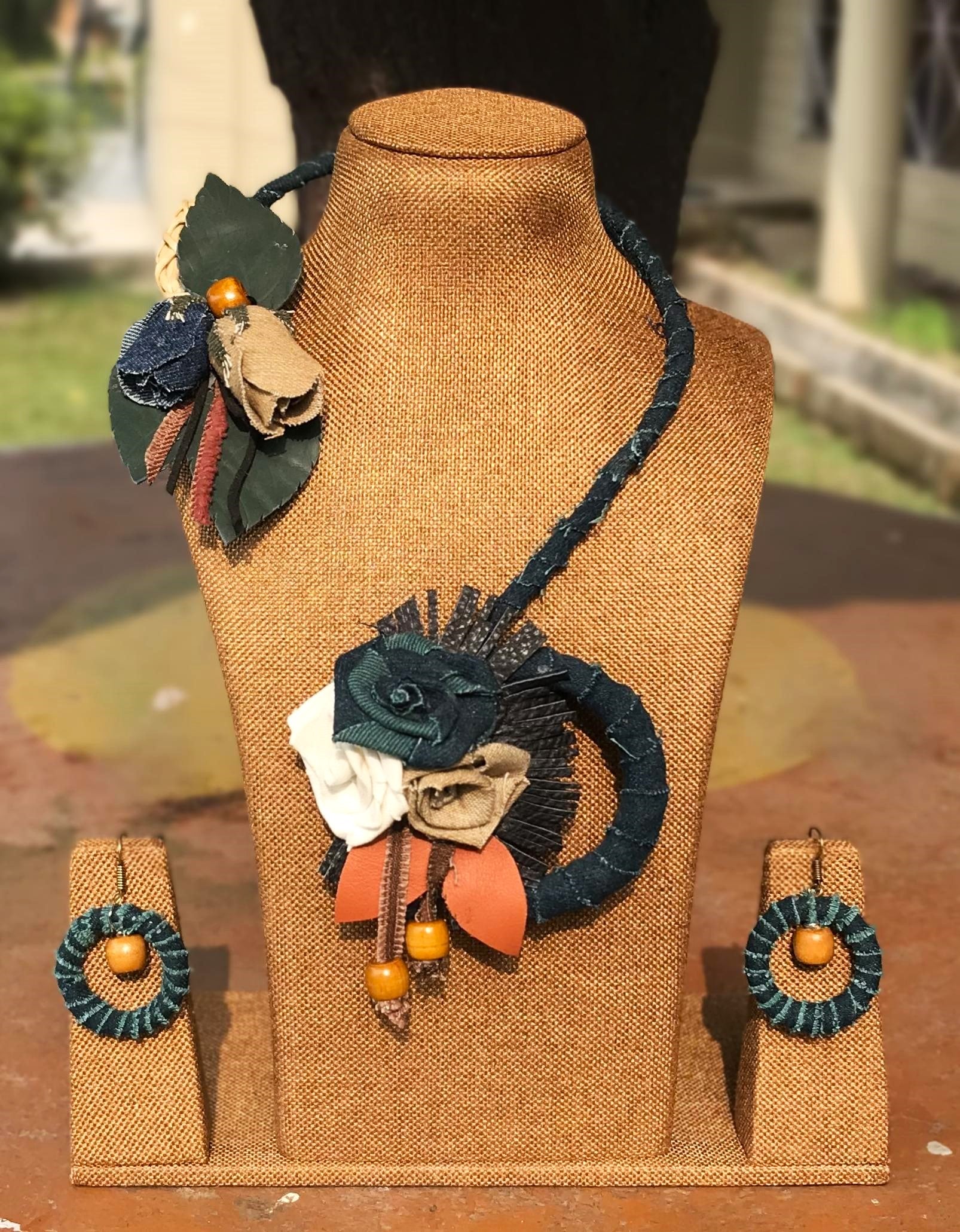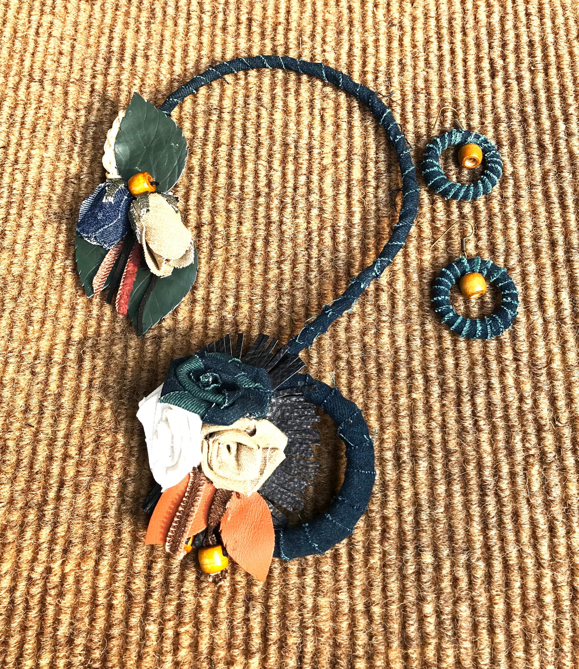 Denim jewellery is a unique and creative way to incorporate the durability and texture of denim fabric into fashion accessories. By combining denim with various embellishments such as leather, wooden beads & ceramic beads we have created stylish and often eco-friendly jewellery, each offering a casual yet chic aesthetic. The versatility of denim allows for both bold, statement pieces and subtle, minimalist designs. Denim’s rugged appeal contrasts beautifully with delicate accents, making these pieces stand out in a fashionable, everyday wardrobe.
