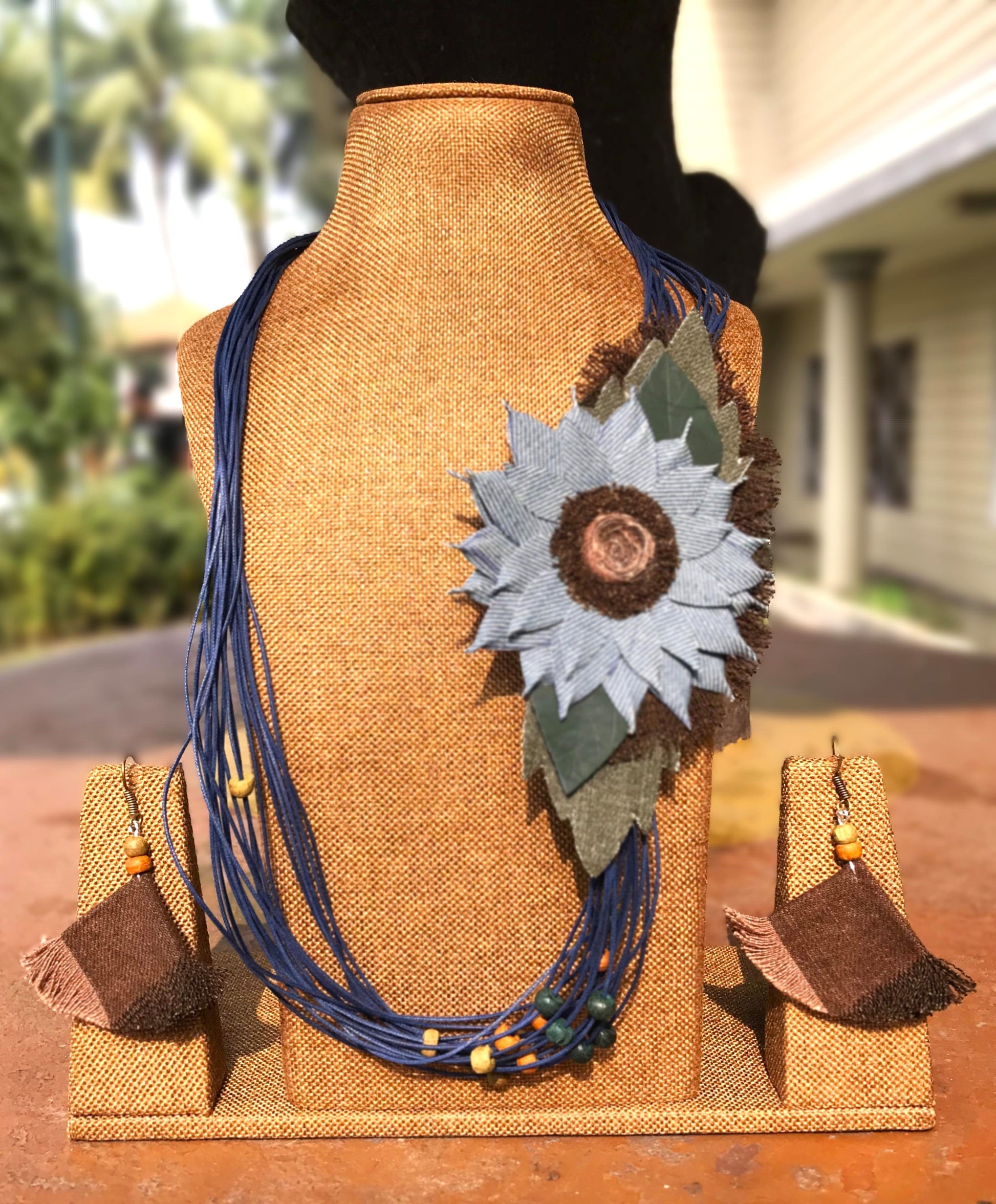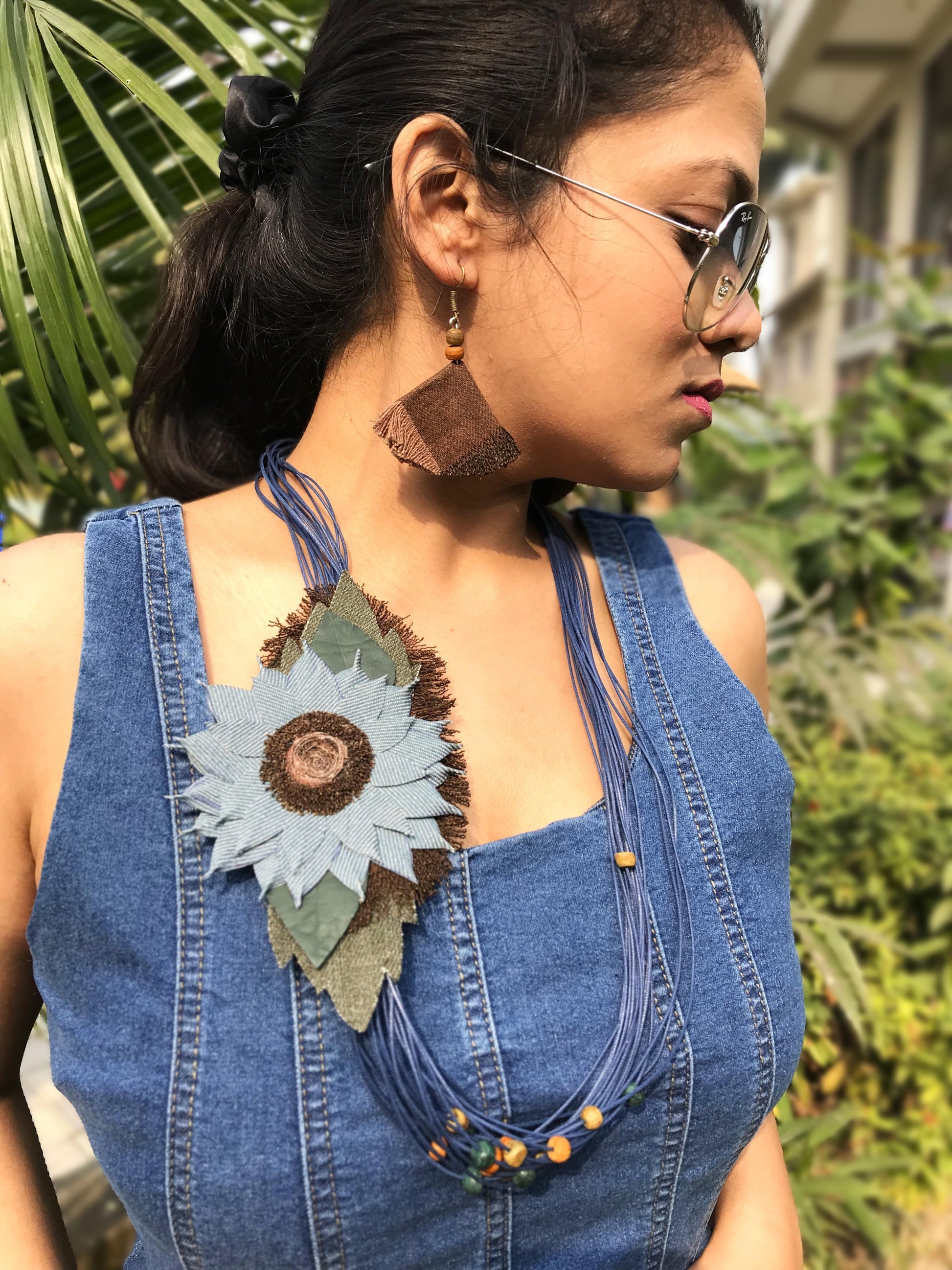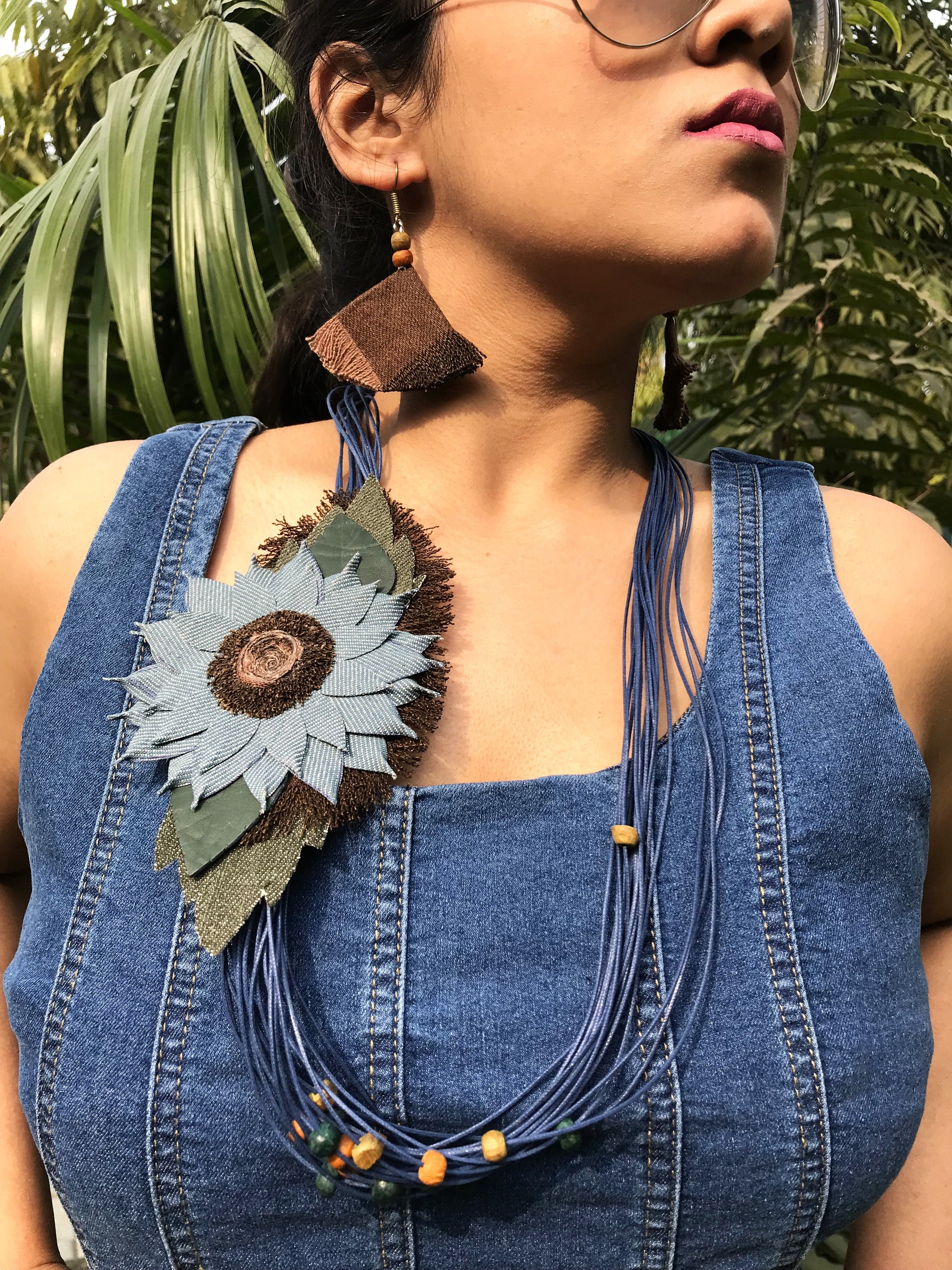 Denim jewellery is a unique and creative way to incorporate the durability and texture of denim fabric into fashion accessories. By combining denim with various embellishments such as leather, wooden beads & ceramic beads we have created stylish and often eco-friendly jewellery, each offering a casual yet chic aesthetic. The versatility of denim allows for both bold, statement pieces and subtle, minimalist designs. Denim’s rugged appeal contrasts beautifully with delicate accents, making these pieces stand out in a fashionable, everyday wardrobe.