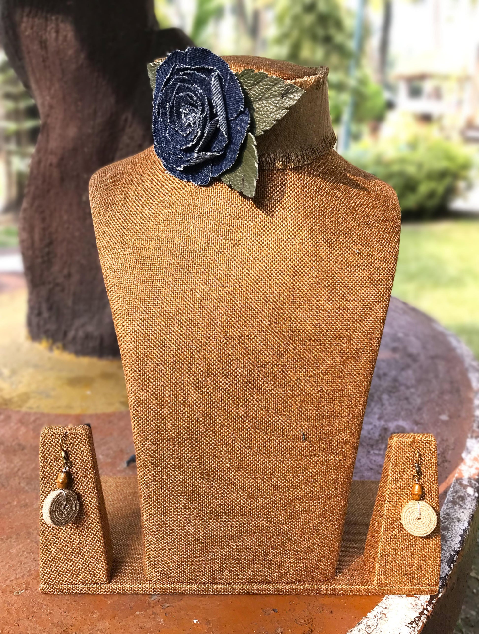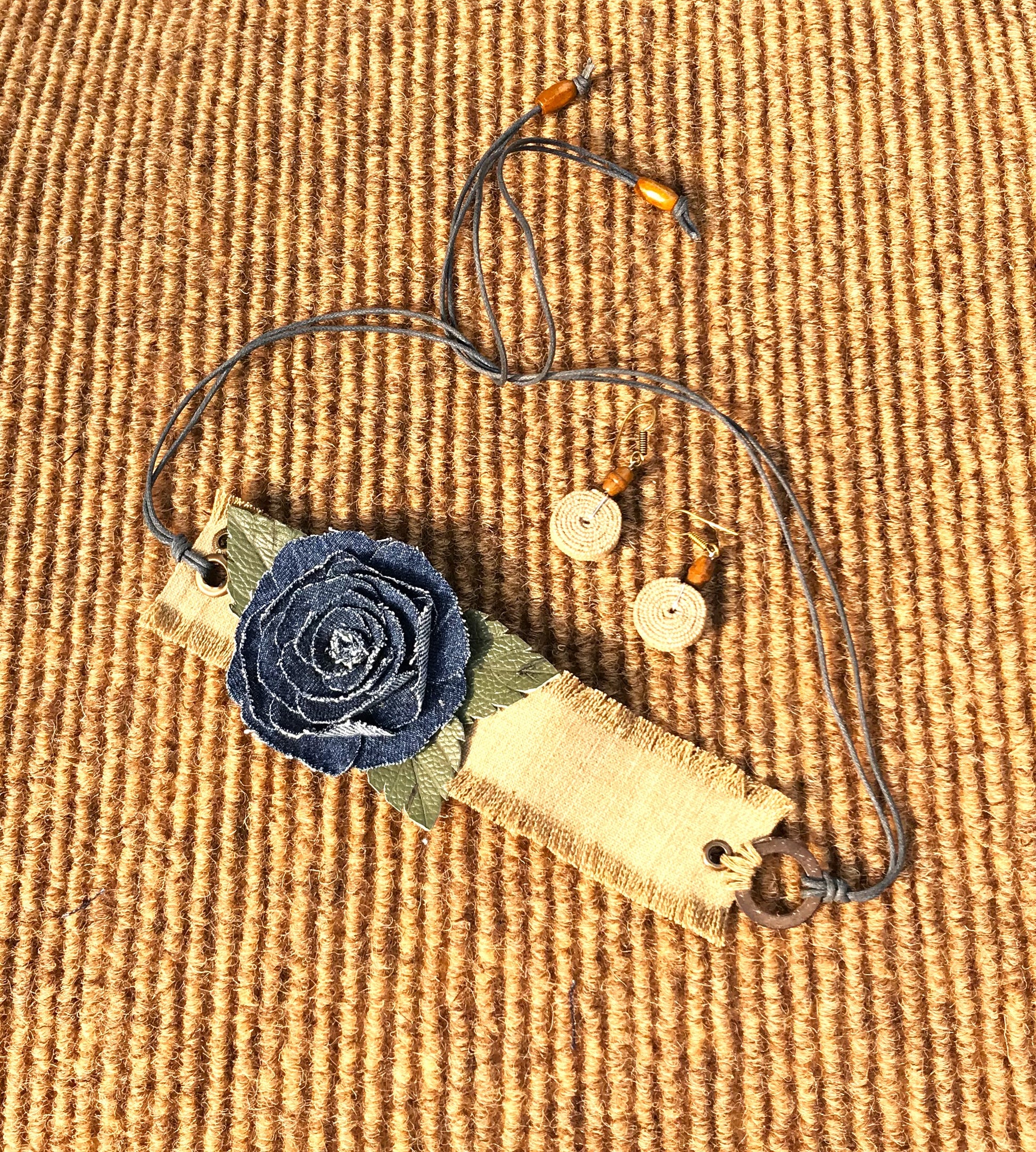 Denim jewellery is a unique and creative way to incorporate the durability and texture of denim fabric into fashion accessories. By combining denim with various embellishments such as leather, wooden beads & ceramic beads we have created stylish and often eco-friendly jewellery, each offering a casual yet chic aesthetic. The versatility of denim allows for both bold, statement pieces and subtle, minimalist designs. Denim’s rugged appeal contrasts beautifully with delicate accents, making these pieces stand out in a fashionable, everyday wardrobe.