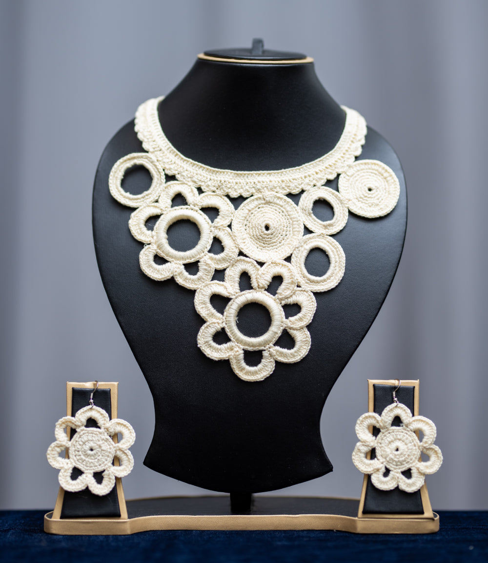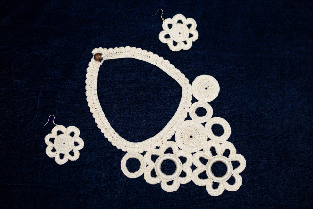 Crochet jewellery offers a delicate and exquisite alternative to traditional metal ornaments. These handcrafted pieces are exclusively created using fine threads and intricate crochet techniques, resulting in lightweight, unique accessories that make a statement. From necklaces to earrings, each item is meticulously crafted, often incorporating beads and crystals for added elegance. Our Crochet jewellery is perfect for those who seek a more personalised, artisanal touch in their accessories, blending fashion with timeless craftsmanship. The intricate designs and soft textures of crochet ornaments make them a versatile addition to any jewellery collection.