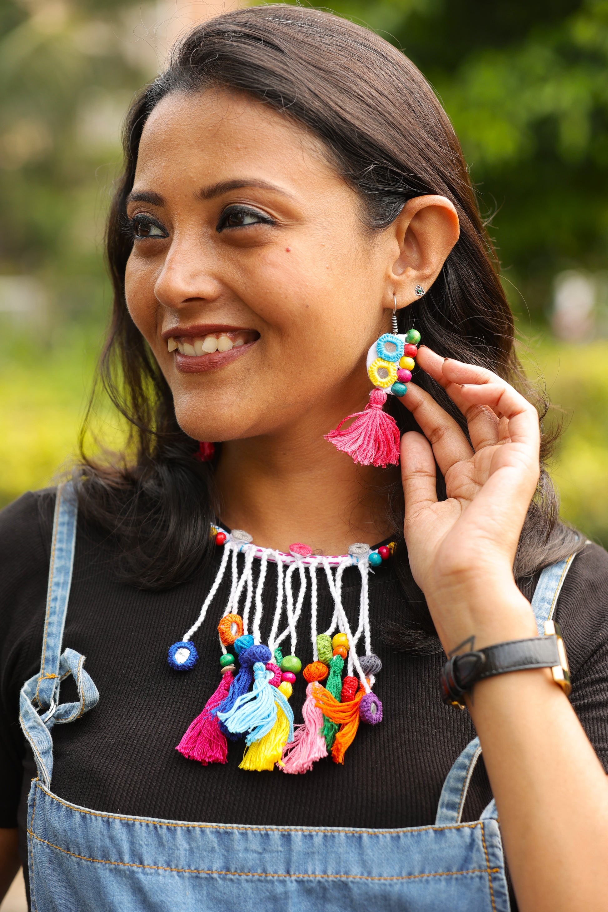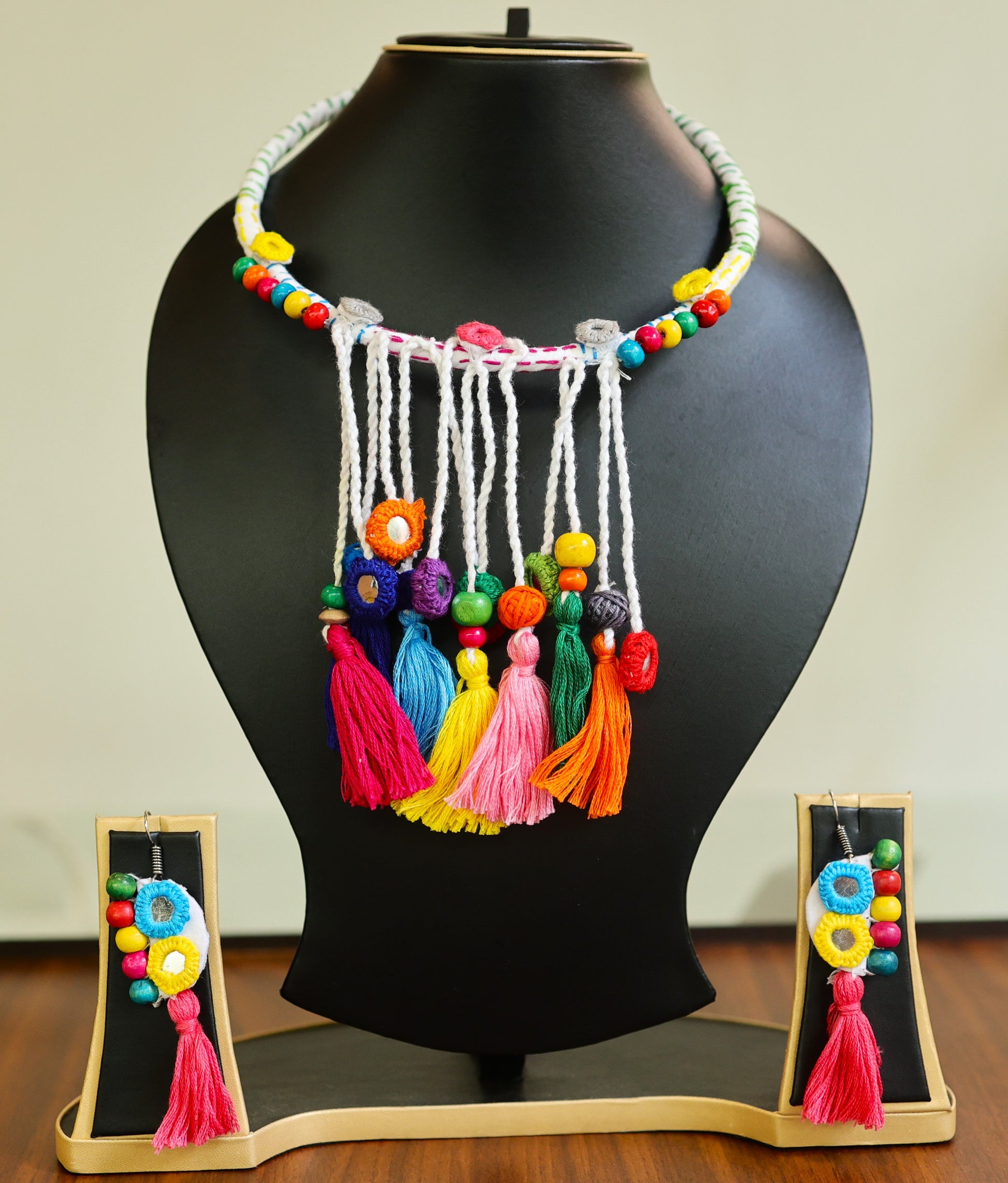 Mirror work jewellery is an exquisite form of handcrafted artistry that reflects both beauty and tradition. These exclusive ornaments often feature small, intricately cut mirrors embedded in a variety of jewellery pieces, from necklaces to earrings. Traditionally worn in Indian weddings and festivals, mirror jewellery has gained popularity globally for its bold, reflective designs that catch the light and create a dazzling effect. These handcrafted pieces are often paired with colourful beads and metalwork, creating a vibrant, festive look. Our handcrafted Mirror jewellery ornaments are a perfect choice for those seeking to make a bold fashion statement with a touch of cultural heritage.