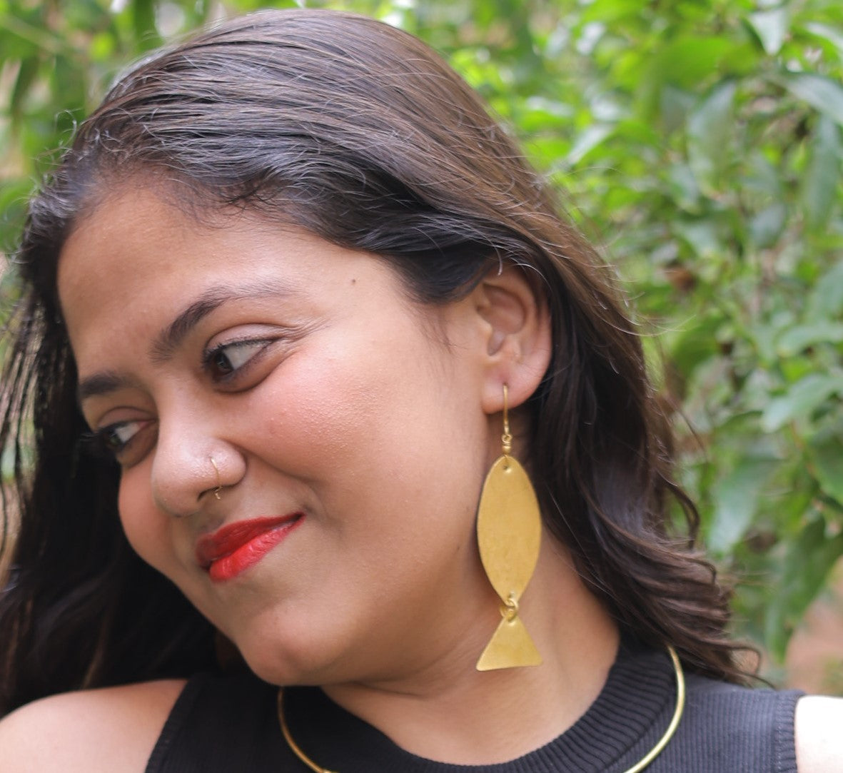 Contemporary Dokra jewellery is a stylish and artisanal form of adornment that blends traditional metal casting techniques with modern aesthetics. Crafted by skilled artisans using the ancient lost-wax technique, each piece features intricate designs, often inspired by nature and tribal motifs. The rustic appeal of Dokra pieces make it a versatile accessory, perfectly complemented by indowestern clothing and earthy, bohemian attire along with handwoven sarees, linen or cotton dresses, and ethnic kurtas. The raw, natural finish of these ornaments pairs well with minimalistic clothing in neutral tones, allowing them to stand out as a statement piece.
